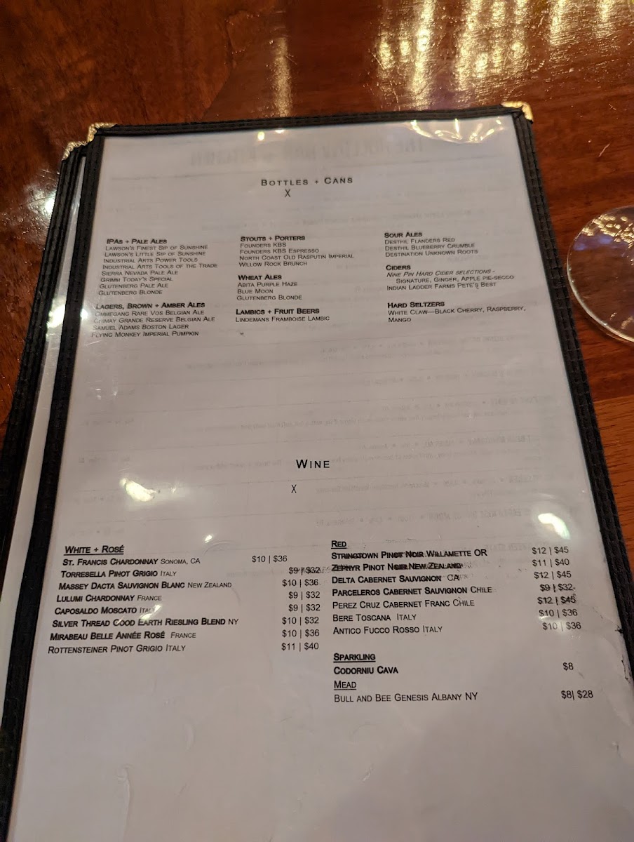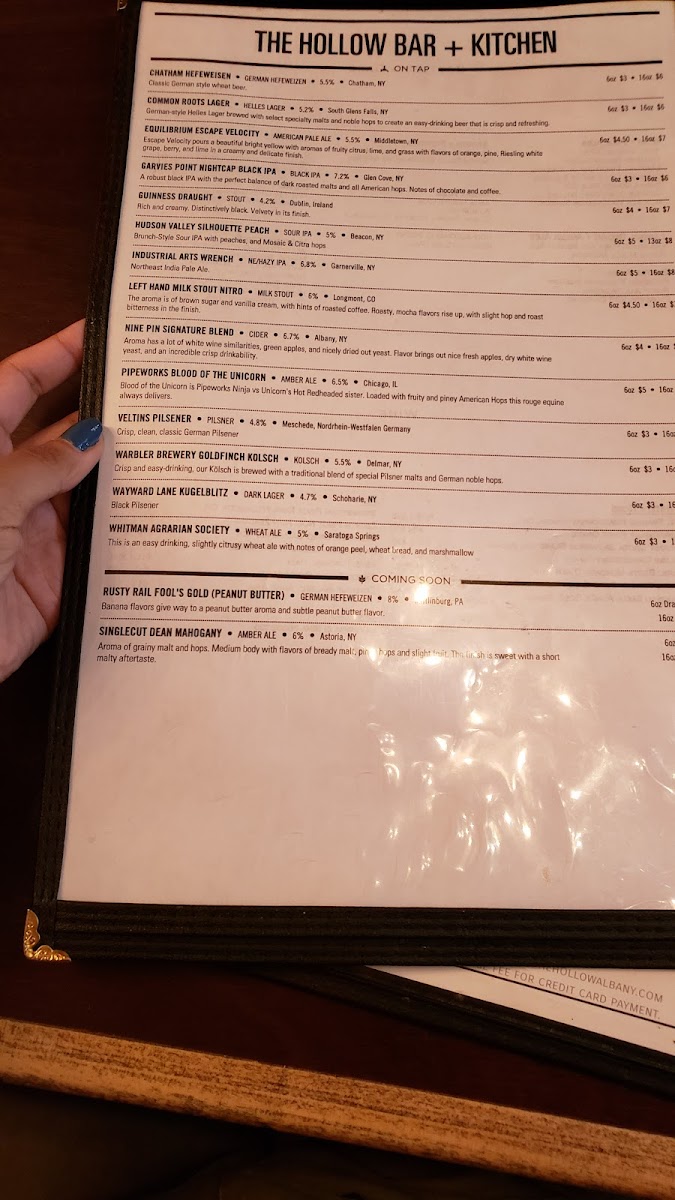 The Hollow Bar Kitchen Menu